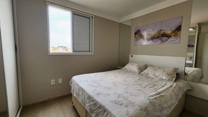 Excelente apartamento localizado no Residencial Vita Parque, em torre única, no bairro Parque Industrial. O imóvel possui planta versátil, atualmente configurada com 2 dormitórios, sendo 1 suíte, sala estendida (com possibilidade de reversão para 3º dormitório), varanda com móveis planejados.
